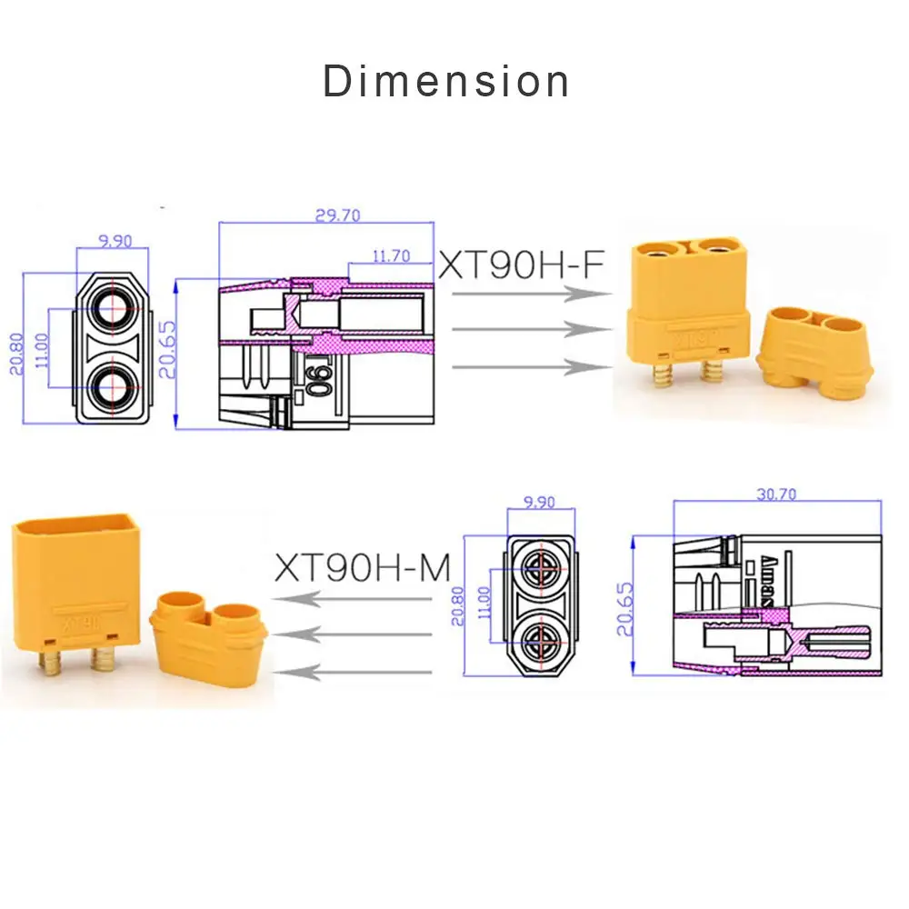 Conectores AMASS XT90H con tapa aislante protectora, macho y hembra XT90 para batería Lipo modelo RC Hobby, 10 pares-3